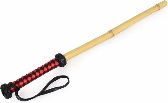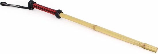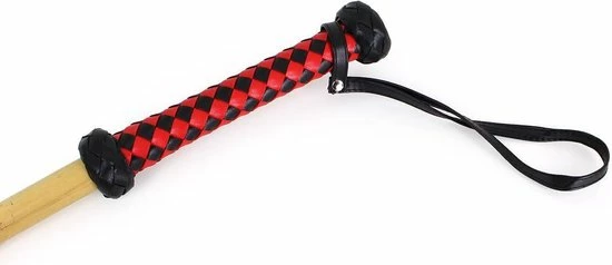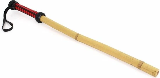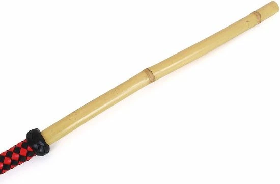 Deze populaire Dikke Bamboo Stok wordt geleverd met een handige band aan een handvat van gevlochten kunstleer, in rood en zwart.