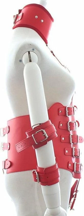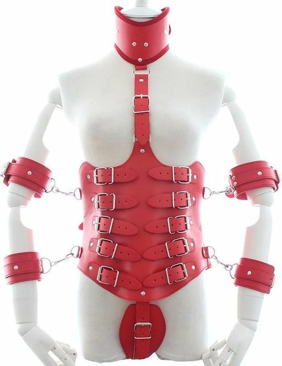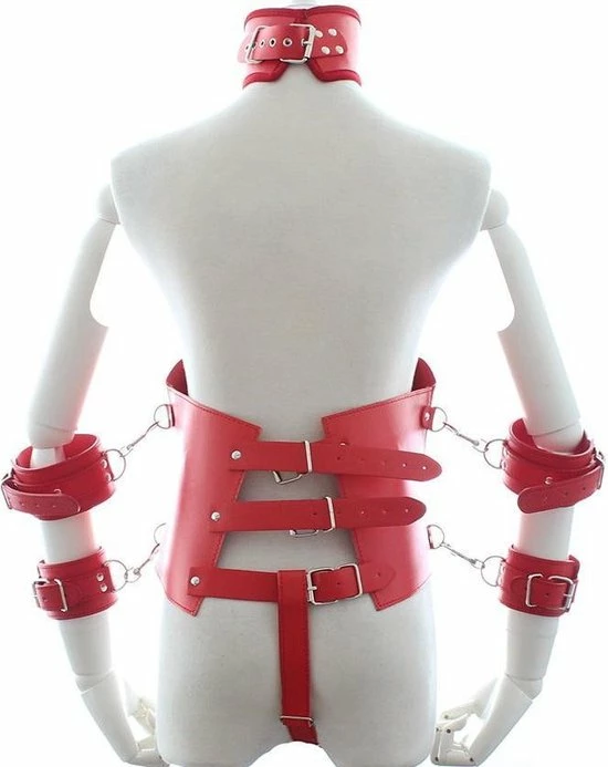 Wordt geleverd met handboeien en armboeien.