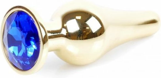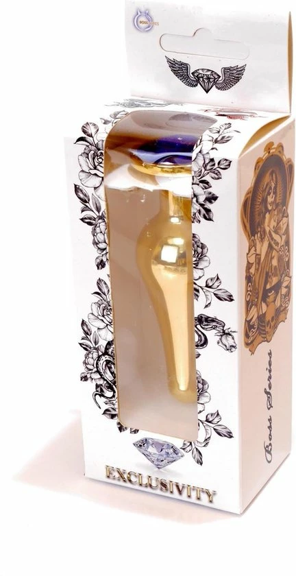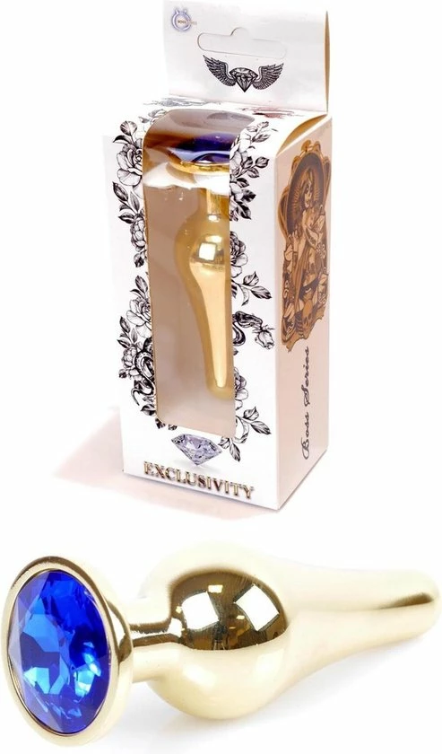 Bossoftoys – Gold Butt Plug – Anal plug with dark blue stone – length 9,5 m – dia 3 cm – 64-00068 – colour window box