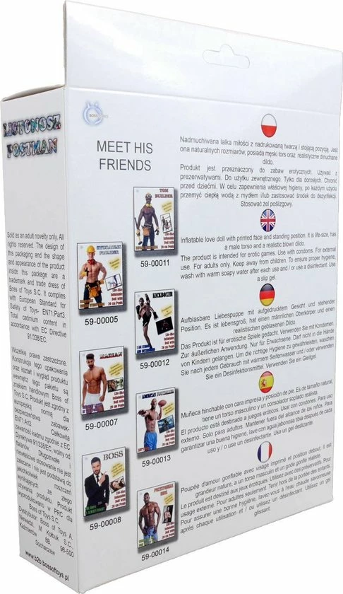 Het mooie lichaam van het model, dat al zijn kwaliteiten wordt weergegeven voor je. Opblaaspop met gedrukte gezicht en staande positie (160 cm). Het is op ware grootte, een mannelijk torso, Om een ??goede hygi?ne waarborgen na elk gebruik wassen met warm water en zeep en / of gebruik een ontsmettingsmiddel. Met een op water gebaseerde gel slip.