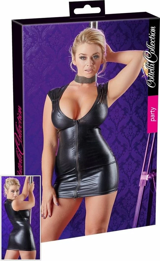 Promo ? Cottelli Collection – Wetlook Mini Jurk Met Lage Halslijn En Tweeweg Rits Die Wacht Om Geopend Te Worden – Maat L – Zwart ?