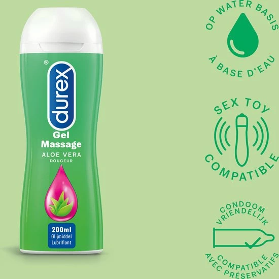 ook het verzachtende Durex Play Aloë Vera glijmiddel. Dit glijmiddel is tevens op basis van water en is veilig te gebruiken in combinatie met condooms.