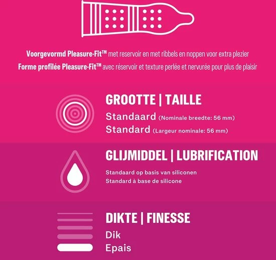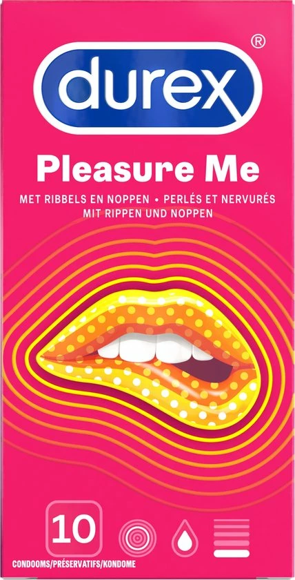 De Durex Pleasure Me Condooms zijn voorzien van nopjes en ribbels voor extra genot. De Easy-on pasvorm zorgt voor meer comfort. Het condoom heeft een fijne geur en is gemaakt van transparant latex. Dit is een grootverpakking en bevat 2x 10 stuks.
