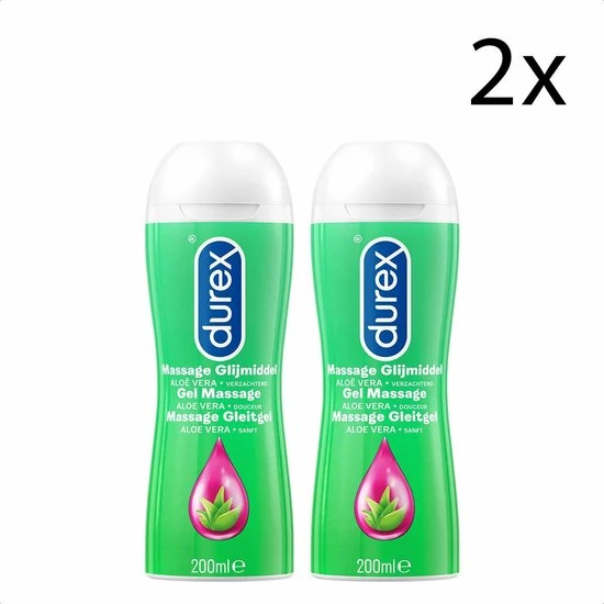 Durex Massage Olie en Glijmiddel 2-in-1 Aloë Vera is een milde massagegel die geschikt is voor gebruik op alle lichaamsdelen. De gel is multifunctioneel en ook te gebruiken als glijmiddel. De gel is gemaakt op waterbasis. De gel vlekt niet en is condoomvriendelijk. Dit is een grootverpakking en bevat 2x dit product.