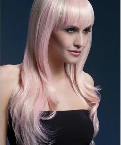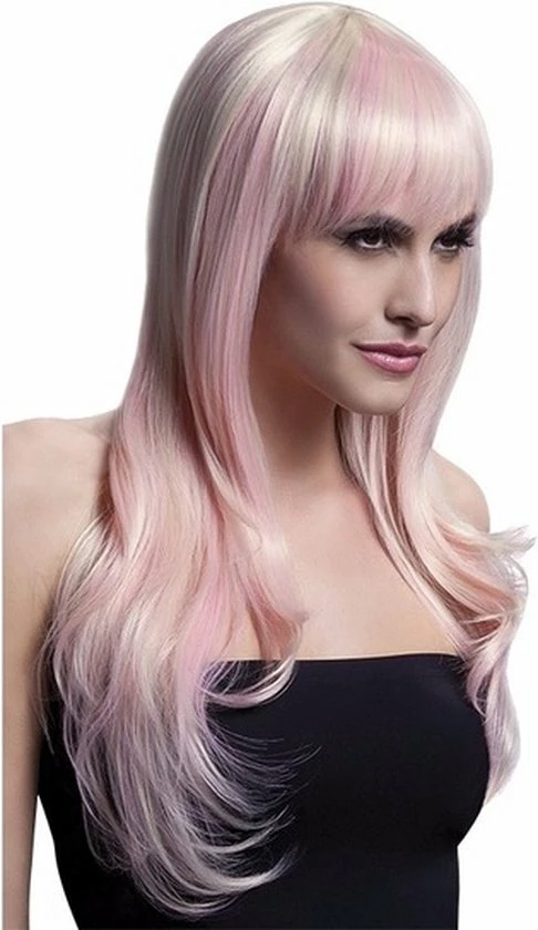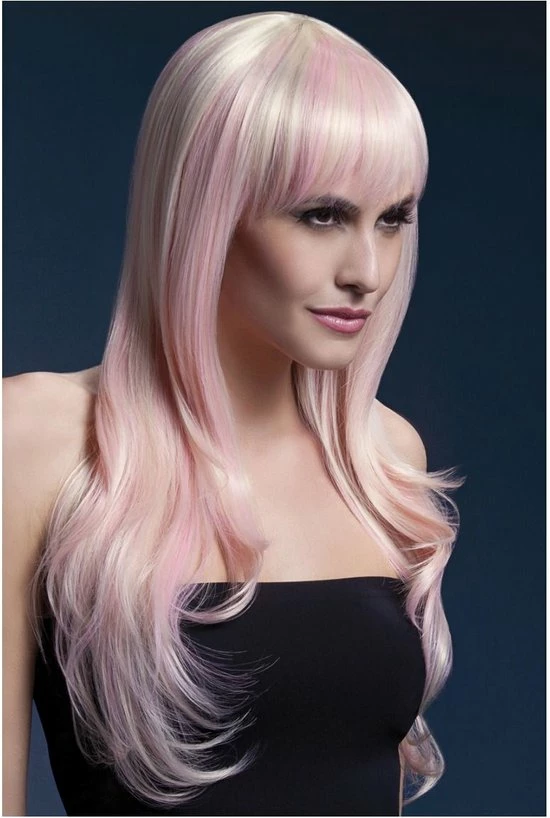 Deze lange witblonde pruik van Fever is een pruik voor de vrouwen onder ons die graag eens een volle bos met lange blonde haren willen. Is het iets voor jou? De haren van de pruik hebben een lengte van 66cm en vallen tot over ruim over je schouders. Door de blonde haren zitten ook nog zachtroze plukken voor een extra lief effect. Je kan de pruik zelf stylen tot het gewenste model met een styling tool tot 120 graden.