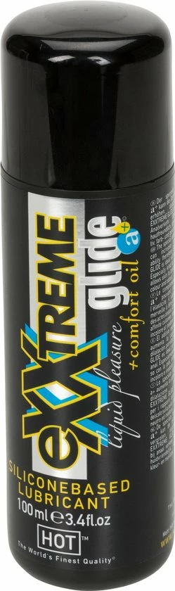 HOT EXXTREME GLIDE with comfort oil a+ silicone-based lubricant for the extremest demands, especially for anal intercourse. Containing extracts of St. Johns wort oil and evening primrose oil to relax the muscles. This combination of special, cosmetic silicone oils of the highest quality produces incredibly pleasurable lubrication. Extremely long-lasting gliding film, odourless and tasteless, results in a very smooth and silky feel. Particularly well suited for use with condoms, rubber and latex products, as well as toys.
