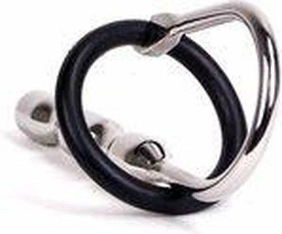 De rubberen band wordt meegeleverd in twee maten en functioneert als een cockring.