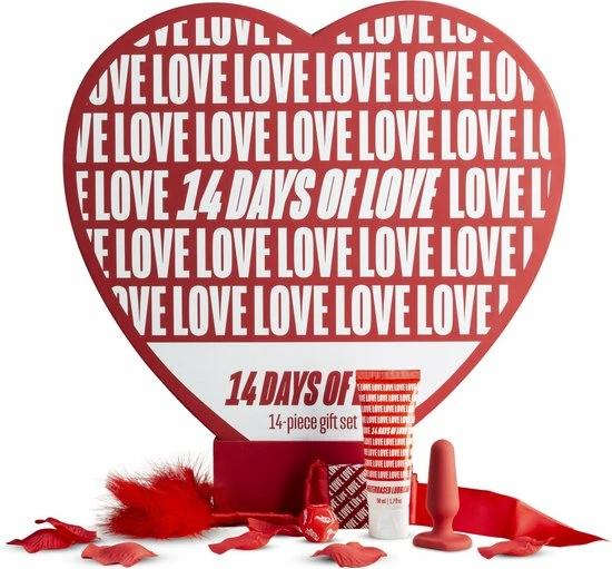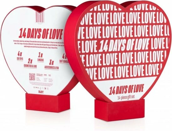 Maak een onvergetelijke, unieke dag met onze 14 Days of Love Box! Of je nu op zoek bent naar een cadeau voor hem of voor haar, deze gift box zit vol met spannende speeltjes voor koppels. De hartvormige doos zit vol met unieke toys en accessoires die jullie in romantische sferen gaan brengen. De gift box heeft 14 aparte vakjes, maak elke dag een vakje open en experimenteer samen met jouw partner met het speeltje van die dag. Probeer 14 dagen lang iets nieuws uit, maak het nog spannender in de slaapkamer ?f daarbuiten met dit cadeau! Voor een spannende en een romantische avond moet je bij EasyToys zijn! Verras jouw geliefde met een romantische cadeauset.
