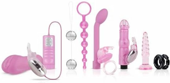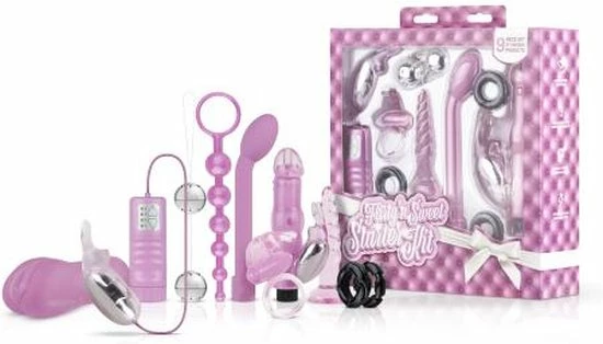 Deze Flirty ‘n Sweet Starter Kit van Loveboxxx is een perfect cadeau om te geven aan jouw lover voor wat extra actie, plezier en spanning in de slaapkamer. Deze set bestaat uit verschillende seksspeeltjes welke geschikt zijn voor zowel de man en de vrouw als voor samen. Zo is de rabbit vibrator in de set een echt klassiek seksspeeltje voor vrouwen en zit er voor de man een mini masturbator in. Je kunt de speeltjes gebruiken tijdens het voorspel of tijdens de seks. Alle benodigde batterijen zijn inclusief.Afmetingen:-Masturbator met vagina opening: lengte 10 cm. Materiaal is rekbaar.-Pleasure balls: diameter 3.5 cm.-Vibrerende bunny vibrator: lengte 10.5 cm. Diameter 3.5 cm.-Flexibele anaal kralen: invoerdiepte 20 cm. Diameter 1.25 cm.-G-spot vibrator: lengte 21 cm. Diameter 3.5 cm.-Vibrerende cockring: lengte 7.5 cm. Materiaal is rekbaar.-Rabbit vibrator: lengte 20 cm. Diameter 4 cm.-Twisted buttplug: lengte 11 cm. Diameter 2.3 cm.-Cockring set: materiaal is rekbaar.