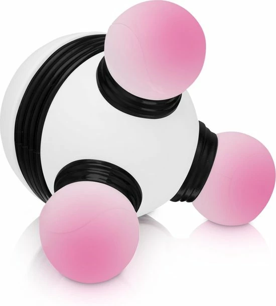 De drie masserende ballen leveren een sprankelend massage, die je tot diep in je spieren kunt voelen. De ballen geven licht (vooral leuk in het donker). Zeer comfortabel vast te houden. De krachtige motor heeft een eenvoudige aan en uit knop. Werkt op 3 x AAA batterijen (niet inbegrepen). Kenmerken: ? Afmetingen: 9 cm (hoog) x 10 cm (diameter) ? Licht en handig ontwerp voor gemakkelijke zelf-massage ? Ergonomisch gevormd om druk uit te oefenen zonder inspanning ? Massager wordt geleverd in een mooie geschenkdoos ? Verlichte ballen (leuk in het donker) ? Batterijtype: 3 x AAA-batterij ? Inclusief batterij: nee ? Niet waterproof