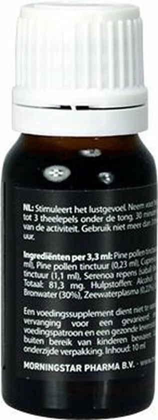 Pine pollen tinctuur complex 1,46 ml, Pine pollen tinctuur 0,23 ml, Cupressus sempervirens tinctuur 1,1 ml, Serenoa repens (sabal) tinctuur 0,53 ml. Totaal 81,3 mg
