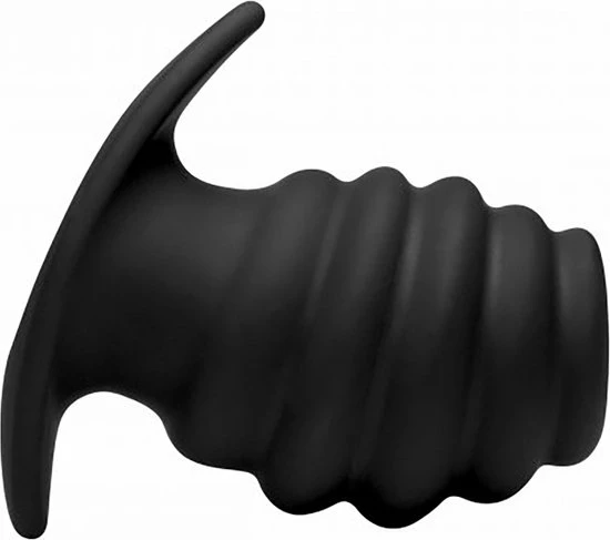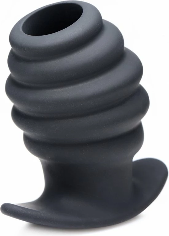 Ribbed for your anal pleasure, this hollow butt plug is available in 3 sizes so that you get the fit that is just right! The design features bold ridges that are curved for comfort while they massage your hole. Meanwhile, the tunnel in the core allows you to insert an anal-safe vibrator, a liquid of your choosing, and more! You can even give your partner a peek inside. Curved to hit the spot, this plug is great for the prostate, but will feel delightful in a female body as well. The ergonomic base allows it to sit comfortably between your cheeks for hours of wear. This unique plug is made of quality silicone, which makes it body-safe. The non-porous and phthalate-free material is not compatible with silicone lubricants, but is easy to sanitize with mild soap or toy cleaner.