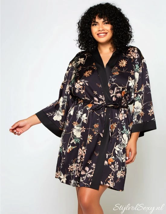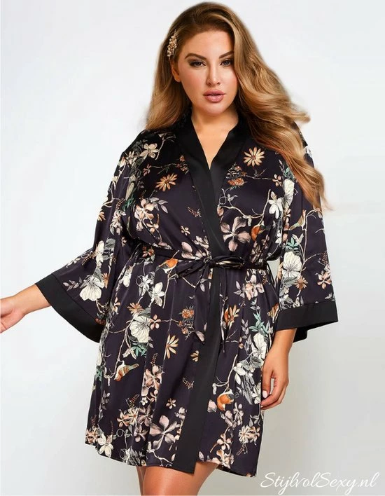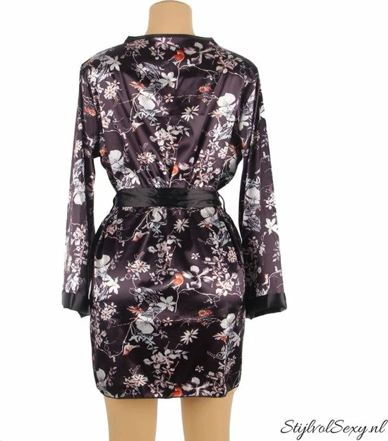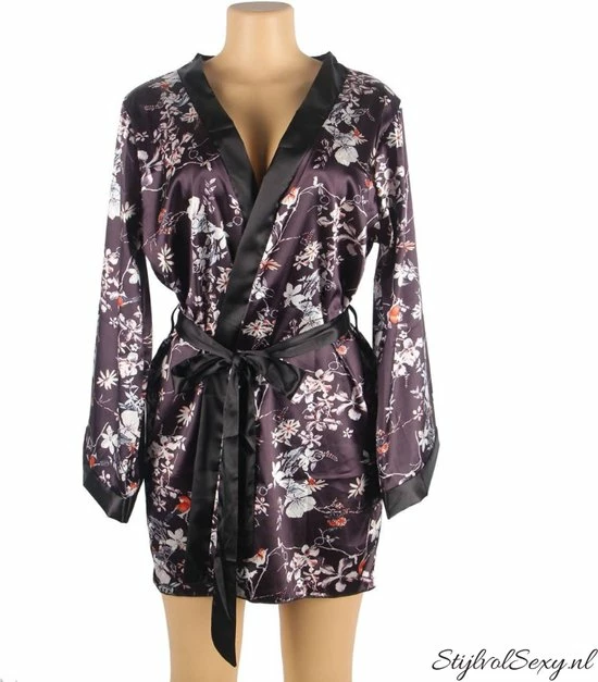 Deze leuke kimono is perfect voor elke ochtend en avond routine. De kimono is gemaakt van een satijnachtige stof met een mooi bloemmotief. De kimono is zacht, glad en voelt heerlijk aan als je hem draagt. Deze speelse kimono bevat een lange wijde mouwen en heeft een ceintuur rond de middel. Je kunt de kimono heel goed in combinatie dragen met je favoriete lingerie, nachtjurkje of korset.