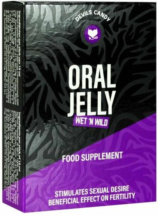 Devils Candy Oral Jelly is een lustopwekker voor mannen en vrouwen en kan het libido stimuleren en de zin in seks laten toenemen. Het is makkelijk in gebruik en ideaal voor een extra spicy effect in de slaapkamer!Gebruiksaanwijzing: neem 1 sachet per persoon per keer. Neem niet meer dan 2 sachets per 24 uur. Het middel heeft ongeveer 30 minuten inwerktijd nodig en werkt het effectiefst op een niet te volle maag. Het resultaat kan per persoon verschillen.Niet te gebruiken door zwangere vrouwen, mensen met hartklachten of een maagzweer. Raadpleeg bij twijfel altijd een dokter. Ingrediënten per sachet (10 ml): Xylitiol-Poeder (E-967) 1000 mg, Citroensmaak 200 mg, Xanthaangom (E-415) 60 mg, Ginkgo Biloba E.S. R4/1 10 mg, Muira Puama E.S., Verhouding 4/1-PR 2454-ARR 10 mg, Macawortel E.S. 7-9 / 1-ALK FREE-ARR 10 mg,Citroenzuurmonohydraat (E-330) 8,86 mg, Gegranuleerd Paotiumsorbaat (E-202)-CG 5 mg, Natriumbenzoaat (E-211)-CG 5 mg, Sucralose (E-955)-CG 2,4 mg, Water tot q.s.