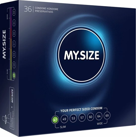 De condooms van het Duitse merk MySize worden gemaakt in diverse maten, zodat u altijd een perfect passend condoom kunt vinden. Het dragen van een goed passend condoom draagt niet alleen veel prettiger, maar verhoogt ook de veiligheid tijdens het gebruik.