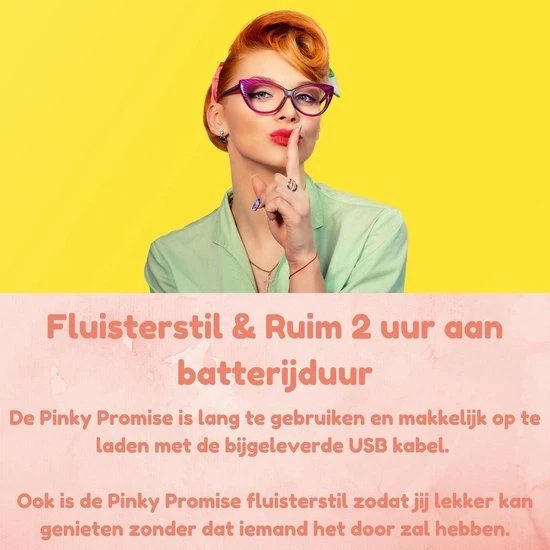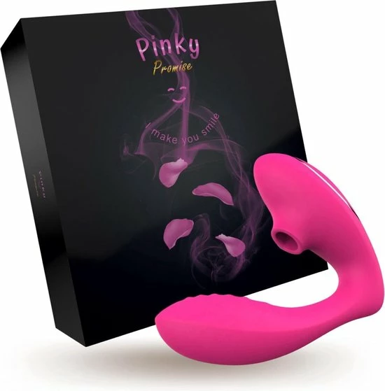De Pinky Promise is ontworpen om de G- spot ?n de clitoris te stimuleren door de 2 componenten die apart van elkaar bediend kunnen worden. Met zijn intense en subtiele luchtdrukgolven en verfijnde trillingen biedt de Pinky Promise spannende stimulaties en maakt het mogelijk om binnen enkele minuten meerdere en intensere orgasmes te bereiken. Veel vrouwen die het speeltje kopen, ervaren een orgasme dat niet kan worden bereikt met gewone vibrators.