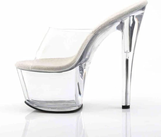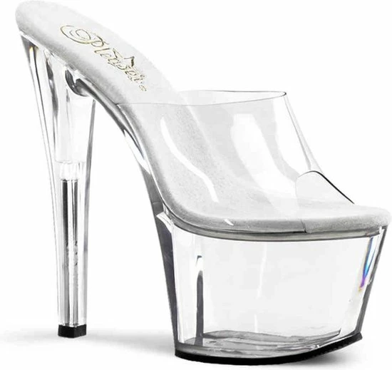 Coupon ? Pleaser Muiltjes -39 ? Shoes- SKY-301 Paaldans Schoenen Transparant/Zilverkleurig ?