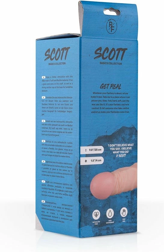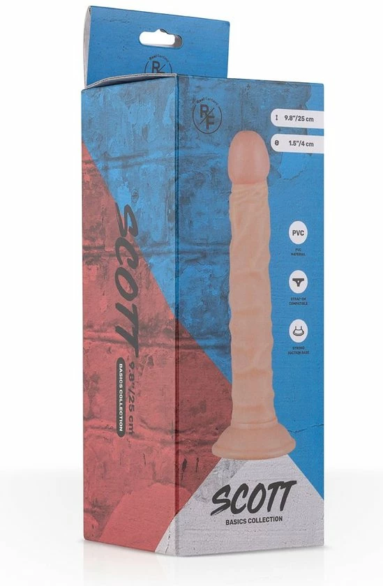Dildo Scott is klaar voor het echte werk. Deze realistische dildo van het merk Real Fantasy zal een veelzijdige speler zijn in het veld van jouw verlangens. De dildo kan anaal en vaginaal gebruikt worden dankzij de sterke zuignap aan de onderkant. De zachte, flexibele schacht volgt elke beweging trouw en is voorzien van grote, gezwollen aders. Gebruik wat glijmiddel en ga voor eindeloos genot met Scott! De perfecte man bestaat niet, de perfecte dildo gelukkig wel! Het merk Real Fantasy brengt jou alle voordelen van de man gebundeld in een realistische dildo collectie. Kies je favoriet en maak elke solo-sessie levensecht.