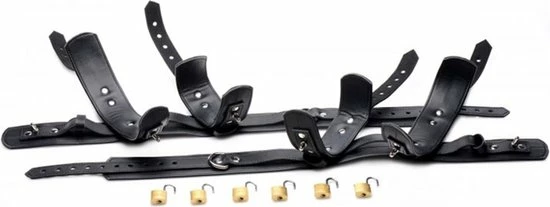 Ontdek de kinky wereld van onderwerping in dit opwindende Frog-Tie Restraint bondage harnas! Dit harnas is gemaakt van zachte materialen en is volledig verstelbaar. Houd je partner op een speelse manier in bedwang met de bijgeleverde 6 slotjes en 12 sleutels. Combineer het harnas naar eigen voorkeur met tepelstickers, kousen of bondagespeeltjes voor de ultieme bdsm ervaring.