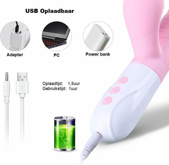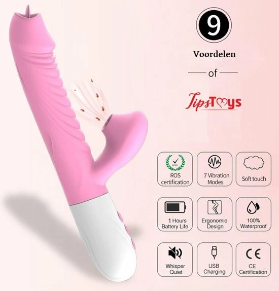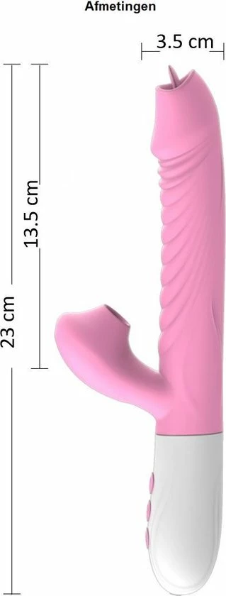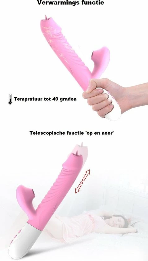 Het seksspeeltje heeft 7 vibratie standen die je kunt bedienen met het drukknopje op het speeltje zelf. Ook zitten er stimulerende zuigkop aan voor de clitoris. Tevens beschikt dit speeltje over een verwarmingsfunctie die tot 40 graden warm kan worden.