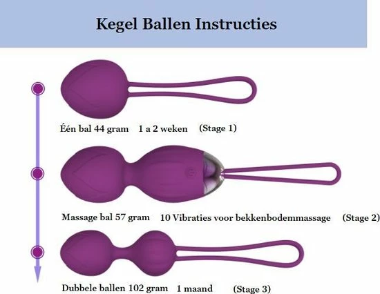 De andere twee betreffende kegelballen zijn zonder vibratie en zeer goed te gebruiken om je inwendige / bekken spieren te trainen voor bijvoorbeeld na een bevalling.