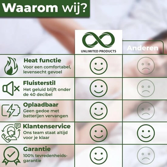 Bij welke vibratie stand dan ook is er voor gezorgd dat het geluid onder de 40 decibel blijft.