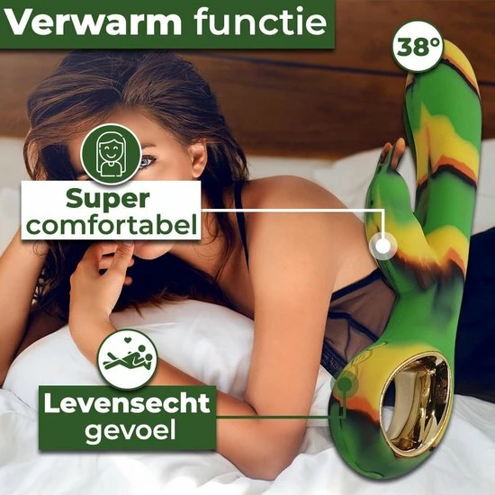 Voor een levensechte beleving heeft de Flame een ingebouwde heating functie (38 graden.) Hij zorgt voor een dubbele stimulatie van de vagina/G-spot en van de clitoris. Laat je verrassen door de 5 snelheden en de 10 frequenties. Door de vele mogelijkheden kun jij de stimulatie persoonlijk afstemmen op jouw behoefte en het moment. Gegarandeerd een heerlijk orgasme.